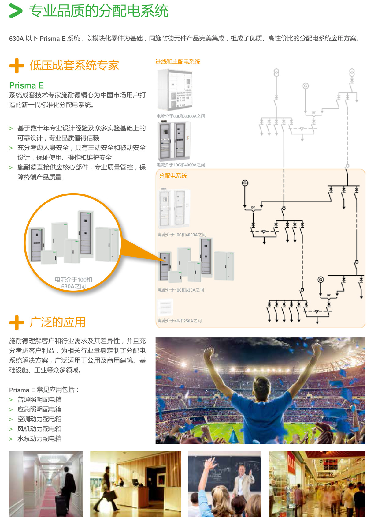 Prisma E配電箱是施耐德授權(quán)中航新科電氣生產(chǎn)的低壓開(kāi)關(guān)設(shè)備。精心為中國(guó)市場(chǎng)打造的新一代低壓配電箱產(chǎn)品。Prisma E適用用630A及以下的低壓分配電系統(tǒng),以模塊化零件為基礎(chǔ),同施耐德元件產(chǎn)品完美集成,組成了優(yōu)質(zhì)、高性價(jià)比的標(biāo)準(zhǔn)化分配電系統(tǒng)應(yīng)用方案。Prisma E開(kāi)關(guān)柜廣泛應(yīng)用于醫(yī)院,學(xué)校,數(shù)據(jù)中心,體育場(chǎng)館,工廠等領(lǐng)域。Prisma E開(kāi)關(guān)柜常見(jiàn)的應(yīng)用包括:普通照明配電箱,應(yīng)急照明配電箱,空調(diào)動(dòng)力配電箱,風(fēng)機(jī)動(dòng)力配電箱,水泵動(dòng)力配電箱,智能照明配電箱,PLC控制柜,變頻啟動(dòng)柜等。