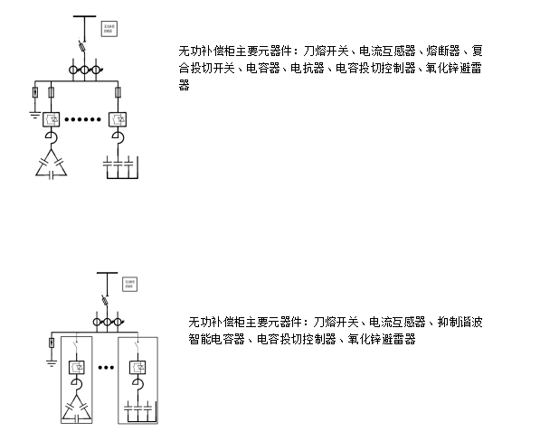 補(bǔ)償容量按變壓器總?cè)萘康?0%進(jìn)行配置,若補(bǔ)償容量不夠則可以適當(dāng)增加電容個(gè)數(shù)。 補(bǔ)償容量配置時(shí)盡量配成梯形補(bǔ)償方式,可提供補(bǔ)償精度。 7%系列補(bǔ)償組件主要應(yīng)用于5、7次諧波超標(biāo),負(fù)荷相對(duì)穩(wěn)定的住宅小區(qū)、城網(wǎng)、企業(yè)等行業(yè)的無功補(bǔ)償,14%系列主要應(yīng)用于3、5、7次諧波超標(biāo),負(fù)荷相對(duì)穩(wěn)定的冶金鑄造、機(jī)械加工、大型鋼廠等行業(yè)的無功補(bǔ)償。 補(bǔ)償組件和抗諧波智能電容器皆可選用。  |