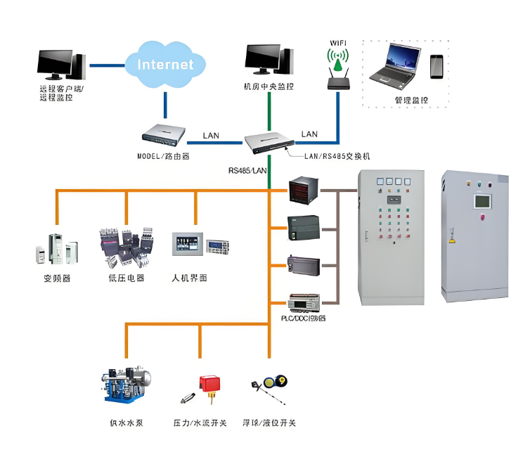 供水設(shè)備是為解決由于壓力不足,無法到達用戶用水的高度或流量,而專門研發(fā)設(shè)計的新型環(huán)保節(jié)能的專業(yè)設(shè)備。供水設(shè)備可分以下幾種,水箱供水設(shè)備,無塔供水設(shè)備,消防供水設(shè)備,變頻恒壓供水設(shè)備,通過該系統(tǒng)可實現(xiàn)對水泵的開停、主排水管路的流量、水泵排水管的壓力、水倉的水位等信號的實時監(jiān)測,并能通過該系統(tǒng)實現(xiàn)三臺主水泵的自動、手動控制并和PLC監(jiān)控系統(tǒng)的聯(lián)網(wǎng)運營,實現(xiàn)地面監(jiān)控。