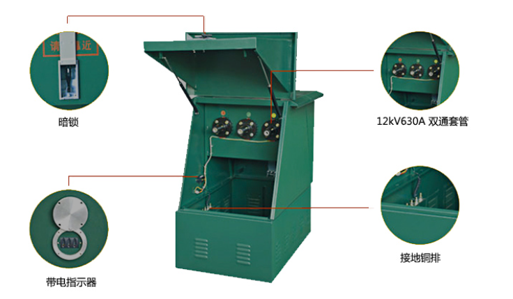 安全防護(hù):全絕緣、全密封結(jié)構(gòu),無需絕緣距離,可安裝電纜型故障指示器,便于迅速查找電纜故障,可靠保證人身安全;